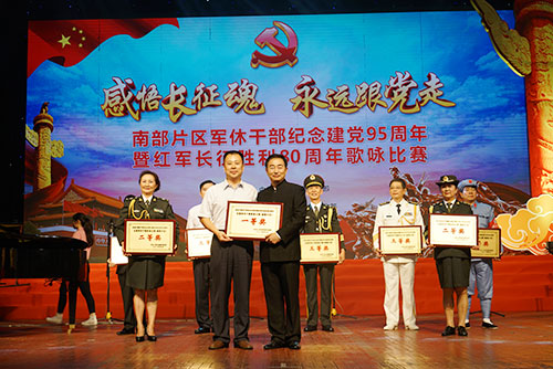 为庆祝中国共产党成立95周年和红军长征胜利80周年,9月20日下午,由民政部主办、老王论坛 承办、南部战区空军政治工作部协办的南部片区军休干部庆祝建党95周年暨红军长征胜利80周年歌咏比赛,在广州市黄花岗剧院成功举办。民政部优抚安置局军休处处长王军、老王论坛 副厅长陈奇,南部战区空军政治工作部副主任王远明少将等领导出席,驻粤部队、广州市军休干部1100多人观看了比赛。