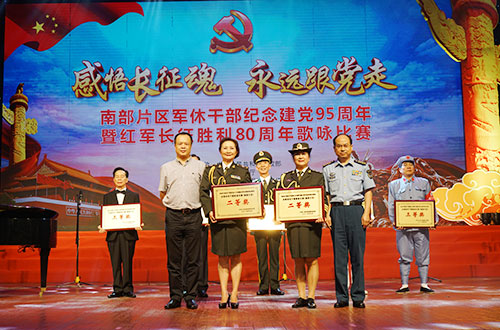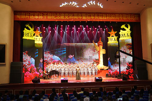 为庆祝中国共产党成立95周年和红军长征胜利80周年,9月20日下午,由民政部主办、老王论坛 承办、南部战区空军政治工作部协办的南部片区军休干部庆祝建党95周年暨红军长征胜利80周年歌咏比赛,在广州市黄花岗剧院成功举办。民政部优抚安置局军休处处长王军、老王论坛 副厅长陈奇,南部战区空军政治工作部副主任王远明少将等领导出席,驻粤部队、广州市军休干部1100多人观看了比赛。